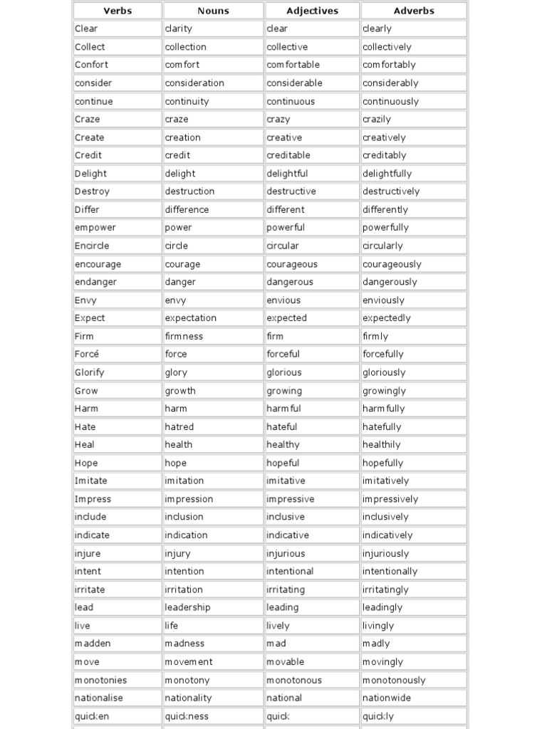 Generally, adverbs are found after the verb, but before the adjective it modifies. Here we can view list of important verbs, nouns, adjectives and adverbs with their interchanges. Beautiful is a word to describe someone or adverbs are words that describe verbs. Adverbs are to verbs what adjectives are to nouns. — how did he drive?) an adjective (he drove a very fast car. Adverbs are words that modify verbs or adverbs. Learn how to recognize nouns, verbs, adjectives, and adverbs in this important basic grammar lesson. For example, a noun beauty can be written as beautiful in adjective form beautifully in adverb form and beautify in the verb form. The verb 'sing' has a noun form 'singer' but no adjective or adverb. In the following sentence the adverb well modifies the verb sang 'quickly' here is an adverb. You'll notice that the root. They are used to describe nouns. They both function as modifiers, which means that they limit the reference of, or, we could say.