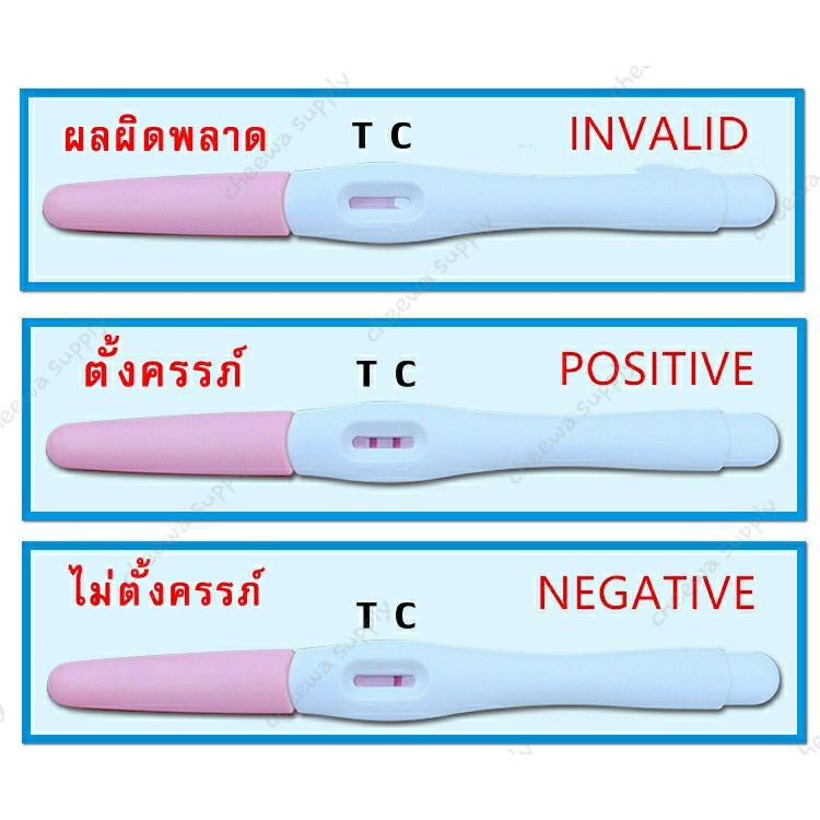 ตรวจแล้วขึ้น 2 ขีด หรือ ขึ้น 2 ขีด จาง ๆ (ขึ้นที่ขีด c และ t) คือ ได้ผลบวก แปลว่า น่าจะมีการตั้งครรภ์ (ถ้าขีด t ขึ้นจาง ๆ แนะนำว่าให้.